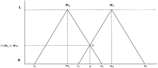 Step 3: The degree of probability that the triangular fuzzy number is larger than the other fuzzy number and is defined in Equation (11).
