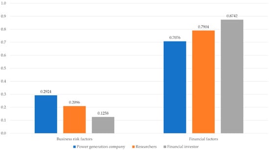 The 74 respondents, were classified into three categories depending on their organization: researchers, power generation companies, and financial investors. To maintain the reliability of the analysis, we selected the experts according to the following criteria. For the “power generation companies” group, experts who have worked for at least 10 years in the development and investment of power generation projects were selected. For the “researchers” group, professors in relevant fields in the universities or researchers who have a Ph.D. with at least 6 years of research experience were selected. For the “financial investors” group, experts who have worked for at least 5 years in the investment field in the power generation and energy industry were selected.