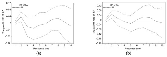 The impulse response of EA caused by the impact of IU and IR. (a) Response of EA to IU; (b) Response of EA to IR.
