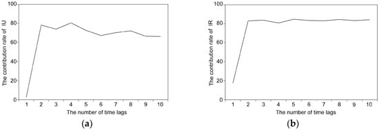 Variance Decomposition of EA. (a) Per cent EA variance due to IU; (b) Per cent EA variance due to IR.