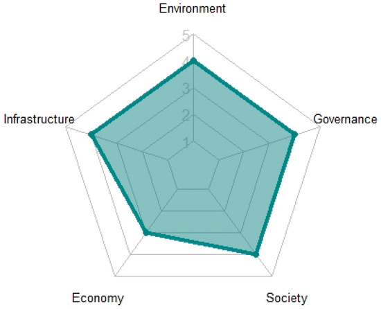 Sixth, following the previous point, many indicator approaches are used to build a composite index for resilience [19,22,45,46,47], vulnerability [18,48,49,50,51,52] or risk [53,54,55]. Specifically, at the scale of urban resilience, indexing across the multitude of action fields was discussed critically. The different scales, topics and units appeared to not be logically linkable. Moreover, a combined index value was seen to not tell much about the level of resilience. It was seen as more important to see the contribution of each action field to the overall resilience. Also, considering the next step of adaptation measures, it is more relevant to have a resilience profile displaying specific topics to be addressed in the municipal context.