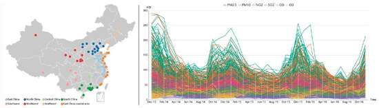 With the rapid development of the social economy and the improvement in public life conditions, urban air pollution has become a hot topic and has attracted progressively more attention [1]. The new Ambient Air Quality Standard of China defines six kinds of major pollutants (, , , , , and ), which are sufficient to give a more comprehensive evaluation of urban air quality. Under the new standard, air quality data are collected continuously by monitoring stations throughout the whole country. The gathered data are typically multivariate, temporal, and geographically labeled.