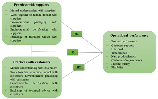 2.2. The Impact of the Adoption of Environmental Management Practices with Suppliers and Customers on Operational Performance
