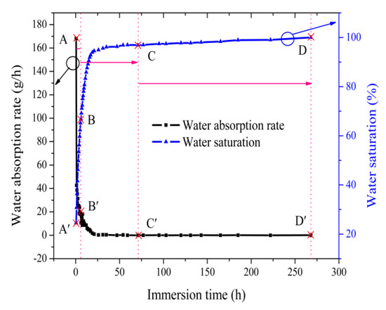 The curve of water saturation and water immersion time absorption rate.