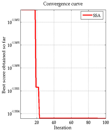 The salp is a kind of deep-sea animal that usually exhibits collective action, forming a group called the salp chain, so as to achieve better movement by quickly coordinating with the location of the food. Based on this, Australian scholar Mirjalili S proposed a new heuristic optimization method, entitled the salp swarm algorithm (SSA) [56]. In the SSA method, the initial population is divided into leaders and followers, and the leader leads the chain of the salp, followed by the followers. Assuming that there is a food source in the search space which is the salp chain target, called , according to the behavior of the salp chain, the specific optimization steps are as follows [42,56,57]: