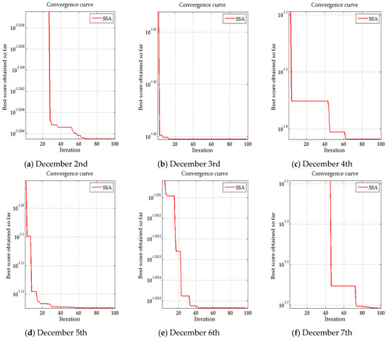 In Equation (13), there are two parameters needed to be determined, that is, the regularization parameter and the kernel function parameter . In order to avoid the influence of subjective factors, this paper uses the salp swarm algorithm (SSA) to automatically find the optimal values of the two parameters.