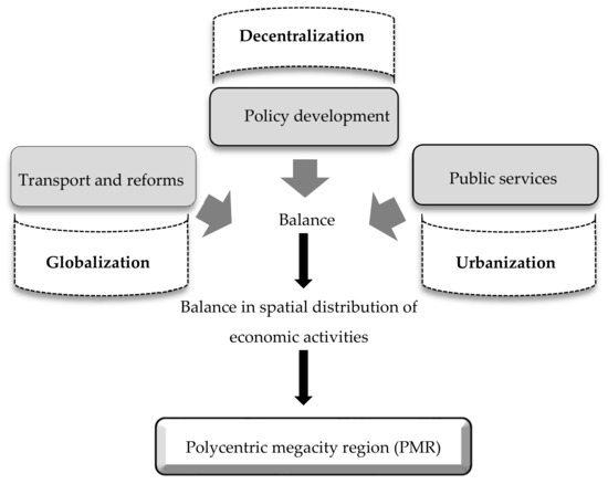 The relevance of marketization and changes in political economy to polycentricity in China has been emphasized by several studies. A number of scholars argue that rapid expansion of transport networks facilitates relocation of economic activities to the new areas and small cities and dispersion of economy, making room for polycentric development [3,7].