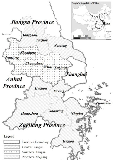 The motivation for this case study selection arises from two key arguments: First, the ‘YRDUA Development Plan’ (developed in 2016) aims to establish a functionally and geographically integrated city region (‘three provinces-one city’) and to strengthen cooperation between urban and rural areas and between leading and lagging cities in the region. Therefore, it offers an excellent and recent example. Second, the YRDUA surpasses the other two largest metropolitan regions (PRD and Jing-Jin-Ji) in China in terms of economic size [16].