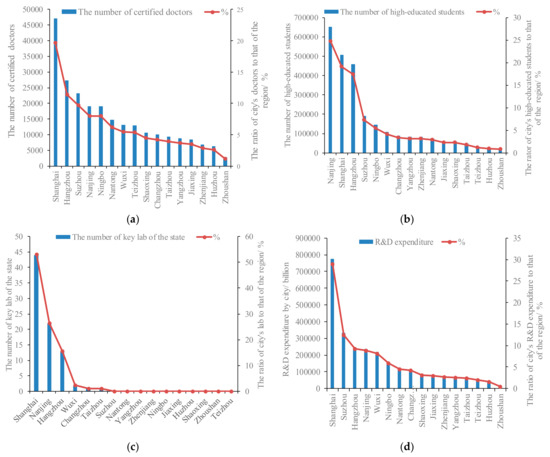 Moreover, the difference in spatial distribution of public services and the associated high-quality jobs (e.g., teachers, doctors, and researchers) greatly affected the spatial patterns of income growth in the YRDUA (Figure 6). Though manufacturing development facilitated the growth in jobs in smaller cities, it did not bring the required population due to lower level of public services. The spatial disparities in public services have significantly contributed to the spatial mismatch of population and income in the YRDUA.