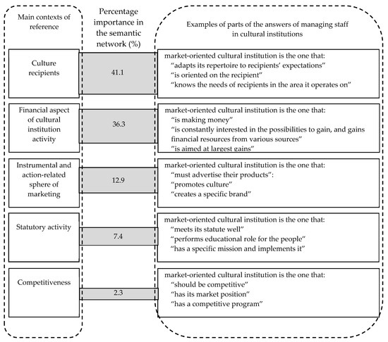 Theoretical constructs of market orientation and related explanatory variables, including those oriented on buyer, oriented on competitors, coordination of functions of market entities, long-term horizon, acquisition and use of information, as well as efficiency are important references for empirical data constituting the basis for the creation of semantic networks for evaluating the notion of “market oriented cultural institution” [33].
