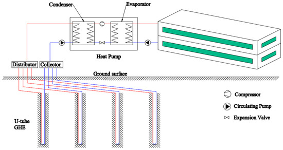 Schematic diagram of Ground Source Heat Pump (GSHP) system.