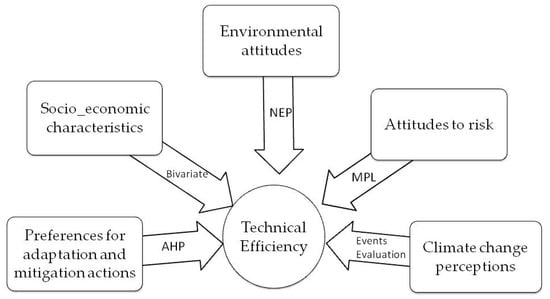 Technical efficiency as related to farmers’ preferences, environmental attitudes, and climate change perception.