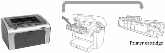 HP, a well-known original manufacturer of office equipment, used an unbreakable design strategy (i.e., non-dismountable design strategy) for its printer cartridges for a long time. A cartridge that does not work can only be replaced with a new cartridge (as shown in Figure 1) and the original cartridge cannot be easily disassembled to repair or add toner. Such a design would guarantee the brand quality of its copier products and enable the recycling and remanufacturing of used ink cartridges to be carried out by the OEM (i.e., the official HP enterprise) to the greatest extent possible. They prevent unauthorized remanufacturing by IRs through technological monopoly, thus reducing the market impact of remanufactured products on original products and maintaining the reputation of their own brands. However, in recent years, with the maturity of remanufacturing technology, many IRs of office supplies have risen (e.g., China’s Yi Sheng Da (ITR), specializing in cartridge remanufacturing). Now, their remanufactured cartridges can achieve the same quality and performance as the original. The remanufacturing of printer cartridge has become an important part of office supply recycling. IRs usually recycle the cartridges through the “trade-old-for-remanufactured” program and then supply the remanufactured cartridges to large enterprises and national institutions. In the global environment of green recycling of office supplies, OEMs such as HP may need to rethink their design strategies from non-disassembly to remanufacturing-oriented disassembly.