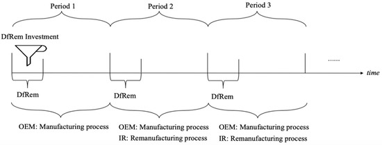 Sequence of events on a closed-loop supply chain with DfRem investment activities.