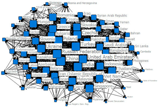 We applied UCINET software to draw up the “The Belt and Road” economic and trade network, the results as shown in Figure 1:
