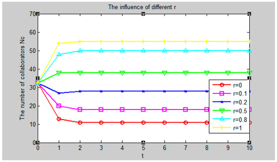 When the values of other factors remain unchanged, suppose r = 0.5, 0.2, 0.8, 0.1, 1, 0 respectively. The simulation results are shown in Figure 7.