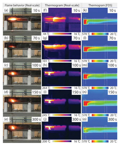 - The limitation of the FDS tool is that it is difficult to accurately reproduce fire situations using it, even though it is the most widely used analysis tool for numerical simulations. It was found that a real-scale fire test is essential, not only for fires in ceilings but also for other fire situations, and additional parameters of the actual fire are needed to improve the accuracy of the FDS. Furthermore, to avoid fire damage in ceilings, which is the subject of this study, further research is necessary on the sprinkler type (vaporization type) in the ceiling and on the melting characteristics and properties of the thermal insulation materials.
