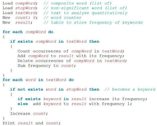Algorithm to generate the word-frequency table, derived from Marine-Roig [].