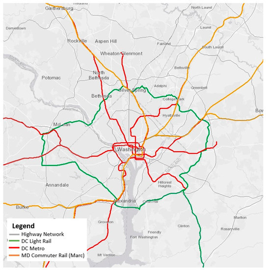 - Nasri, A.; Zhang, L. The analysis of transit-oriented development (TOD) in Washington, DC and Baltimore metropolitan areas. Transp. Policy 2014, 32, 172–179. [Google Scholar] [CrossRef]