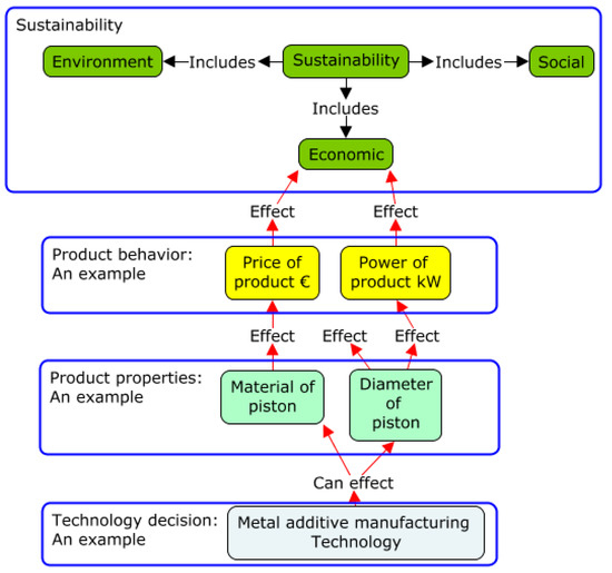 When evaluating the validity of the results, tacit knowledge is captured, modeled, and validated with the company personnel in the workshops. This is generally where the best available knowledge can be found. The main focus of this research is to support technology decision making for sustainability. The gathered knowledge is traceable, since the origin and rationale of the information is known and modeled. This approach enables an evaluation of the validity of the knowledge. Importantly, when information is documented and commonly accepted, the correction and improvement of knowledge also becomes possible, which supports the goal of sustainability. This method is also seen as beneficial for communication when evaluating the factual possibilities related to technologies [39] by using a pragmatic constructivist approach [40]. Product properties and behaviors are linked to all functions within companies and, therefore, TVM is seen as a tool for communication that can support knowledge acquisition.