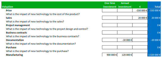 - Mämmelä, J.; Juuti, T.; Korhonen, T.; Julkunen, P.; Lehtonen, T.; Pakkanen, J.; Vanhatalo, M. Evaluating the value and costs of technology in the manufacturing industry. In Proceedings of the NordDesign 2018, Linköping, Sweden, 14–17 August 2018. [Google Scholar]