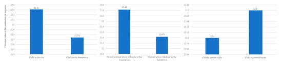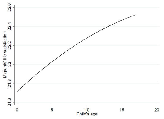 In this study, we found that there was a significant difference in life satisfaction between inter-provincial and intra-provincial migrants, and the life satisfaction of the former group was significantly lower than the latter. Inter-provincial migrants are among the most vulnerable groups in Chinese urban society. Recently, there has been an increasing number of studies on the life satisfaction of migrants [,]. In line with these studies, we also found that the socioeconomic status of migrants has a significant impact on their life satisfaction. For example, income has a positive impact on the life satisfaction of migrants. For many migrants, leaving their hometown and families and moving to the city is all about finding a good job and earning more money. Therefore, some scholars use economic rationality to explain the phenomenon of Chinese migration []. However, existing studies have paid less attention to the impact of the household split on migrants’ life satisfaction. We found that for the intra-provincial migrants, the child variable does not have a significant impact on their life satisfaction, which is primarily related to the fact that they are close to their hometown and can often go home to see their children. For inter-provincial migrants, the life satisfaction of those who moved to the city with their children was significantly lower than that of migrants who left their children in their hometown, but we also found that the life satisfaction of migrants who were concerned about childcare in their hometown was significantly lower than that of migrants who did not worry about childcare in the hometown. These results show that bringing children to the city may increase migrants’ urban living expenses. Moreover, most rural migrants work long hours in the cities, and many do not have free weekends. Migrants would need more time to take care of their children, thus reducing their life satisfaction. However, for many migrants who come from remote and poor areas, leaving their children in the countryside is not a good family choice. Childcare in the hometown has always been a concern for migrants in China, which reduces their life satisfaction. Furthermore, the results of this study also show that Chinese migrants are in a dilemma at present. The lack of social welfare support in the city causes concerns, but if migrants cannot bring their children to the city, they have to worry about family care due to the household split.