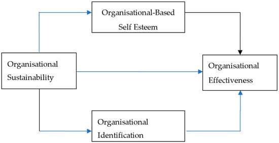 Organisational identification and OBSE mediate the predictive relationship between sustainable organisational practice and organisational effectiveness.