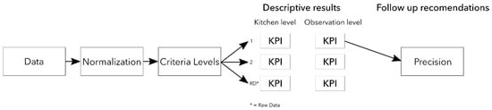 Descriptive statistics for Level 1 were calculated on kitchen level to examine the results in detail, based on the Equation (4):