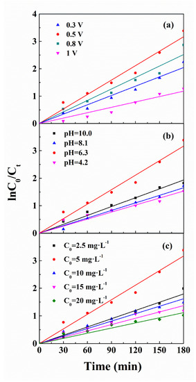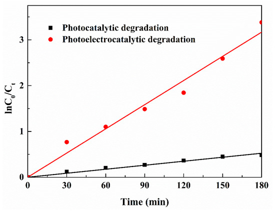 3.2. The Photoelectrocatalytic Degradation Kinetics