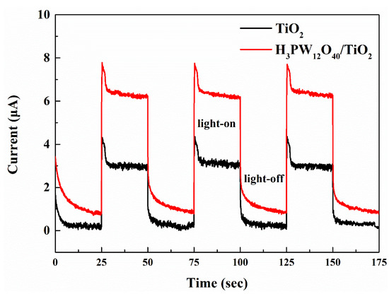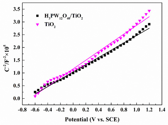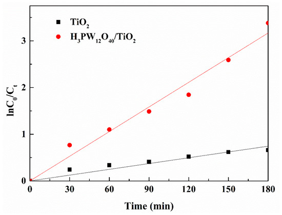 3.3. The Kinetics of H3PW12O40/TiO2 Composite Film and TiO2 Film in the Photoeletrocatalytic System