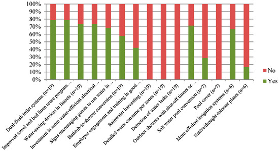 None of the hotels had introduced systems for graywater reuse, rainwater harvesting, water consumption monitoring in key areas, or leak detection. All four measures require greater investment and technical knowledge and have a longer payback period (see Figure 2).