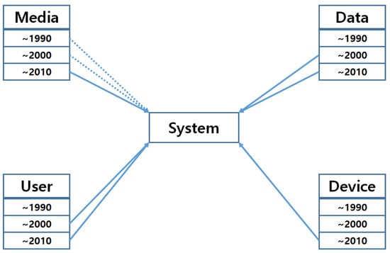 We found that the technology of media was affected by system, data, and user strongly and influenced by device technology weakly. Next, Table 3 provides the result of Y (data) and X (system, media, user, device) using the additive model.