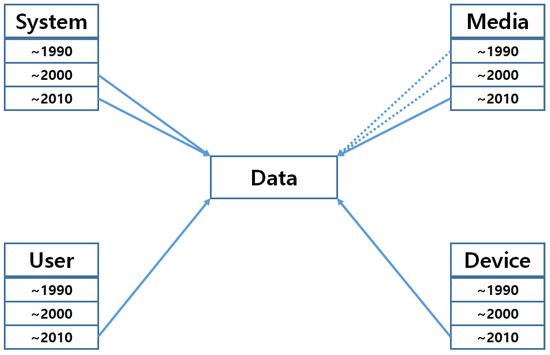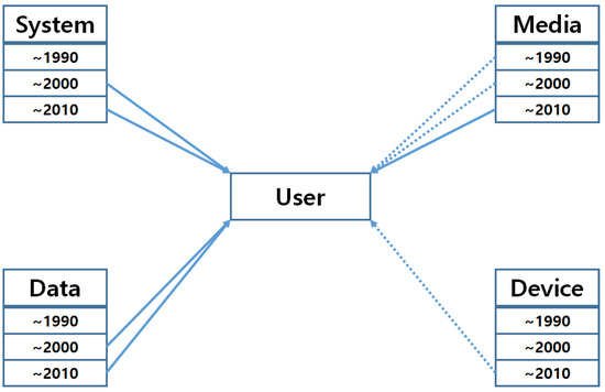 Based on Figure 6, we knew that data technology was most affected by media technology. Moreover, media technology had the least impact on data technology. Thus, the system and user have influenced data technology continuously since 1990. Table 4 represents the additive model results with respect to user technology.