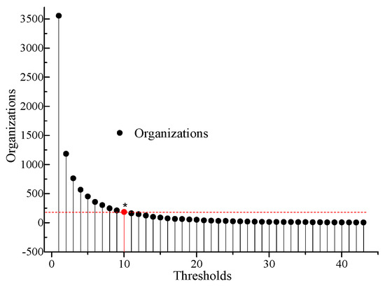 Range of target organization under different thresholds. Note: *the selected threshold meets analysis need.
