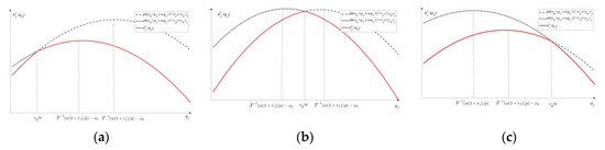 From the negative second-order differential condition as Equation (38), it can be concluded that is concave with the respect of , whose maximum point can be obtained by :