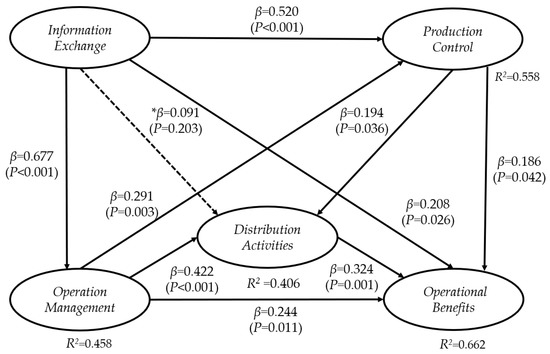 In globalized times the integration of information and communication technologies in companies and their supply chains is required, but there is uncertainty regarding the true impact that these have on efficiency indices or benefits gained in the productive system. This article reports a structural equation model that contains ten hypotheses with five latent variables associated with the integration of information and communication technology in production systems such as information exchange, operations management, production control, distribution activities, and operational benefits obtained. The paper aims to quantify the relationships among those variables, facilitating managers to make decisions in information and communication technologies (ICT) implementation. The model is validated with information from 80 responses to a questionnaire applied to manufacturing companies, and partial least-squares technique is used to statistically validate the hypotheses; the results indicate that the implementation of information technologies facilitates the exchange of information, operations management and production control. This means that ICT integration can create visibility for a supply chain in a material’s flow among partners, facilitate operations management in production lines and distribution activities, and these benefits are ultimately transformed into operational benefits that managers measure as flexibility, low cost and short cycles times with customers.