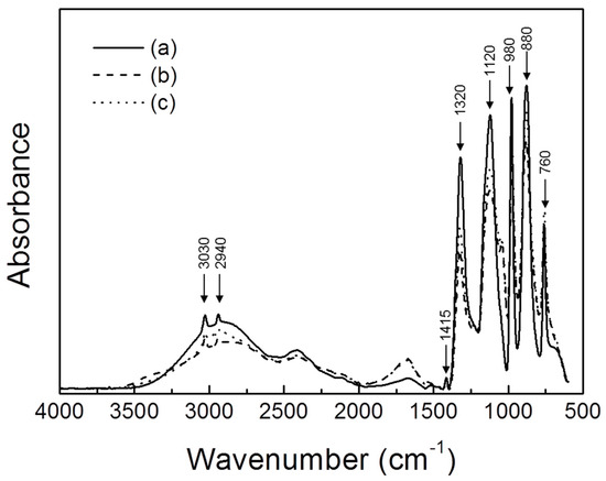 Results of FTIR analysis before and after the fractional distillation: (a) pure MSA, (b) MSA and H2O mixture, and (c) separated MSA.