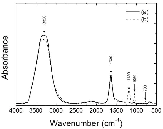 Results of FTIR analysis before and after the fractional distillation: (a) pure H2O and (b) distilled H2O by fractional distillation.