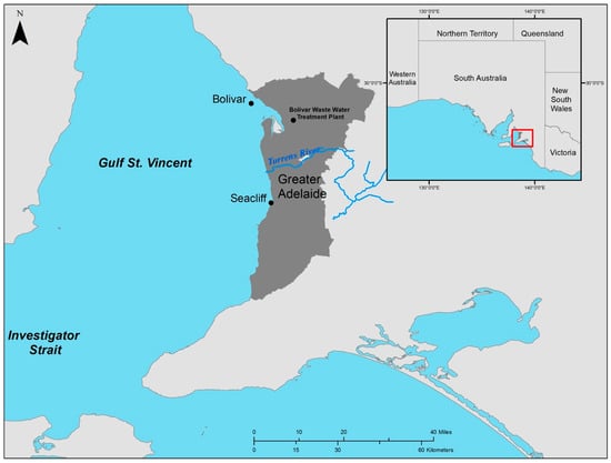- Wilkinson, J.; Pearce, M.; Cromar, N.; Fallowfield, H. Audit of the Quality and Quantity of Treated Wastewater Discharging from Wastewater Treatment Plants (WWTPs) to the Marine Environment; ACWS Technical Report No. 1. Prepared for the Adelaide Coastal Waters Study Steering Committee; Flinders University of South Australia, Department of Environmental Health: Adelaide, Australia, 2003. [Google Scholar]