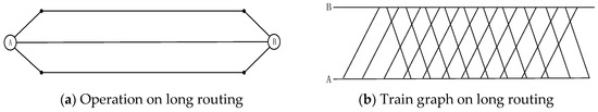 In some special cases, a mixed operation of double routing can also be used. Considering rotating maintenance, rolling stock circulation plans and a long-term maintenance policy, Canca et al. [22] proposed a mixed integer programming model to minimize wasted capacity caused by train empty movements and to balance the workload of the maintenance operation. Cadarso et al. [23] presented an integrated model for the recovery of the timetable and the rolling stock schedules, so that the recovery schedules could be easily implemented in practice and the operations could quickly return to the originally planned schedules after the recovery period. Cadarso et al. [24] proposed an approach synthetically considering the influence of passengers’ behavior, the timetable and rolling stock. It combined two models: one which was an integrated optimization model for the timetable and rolling stock and another which was a model for the passengers’ behavior. The proposed approach could quickly find the best solution in two steps and with a very good balance between various managerial goals.