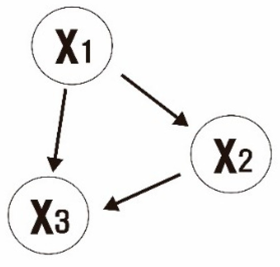 For example, the child nodes in Figure 2 are determined by the conditional probability of the parent nodes if there is a graph that has the nodes that follow the CPD. Any unconnected node is ignored. The joint distribution with n number of variables is expressed in Equation (7):