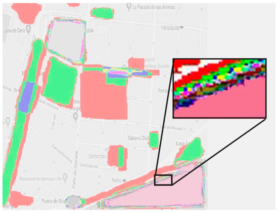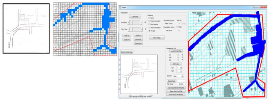 Drawing tools can accurately transfer perceptual information in the software environment [81,82,83] and the user is able to easily transfer mental maps in the program environment on to the main drawing map. By utilizing this feature, the issue of turning and marking landmarks using rectangular boxes (which are only located at the perimeter of the landmark and are not flexible in coinciding with the original landmark) is resolved [84]. Also, given that all numerical calculations are based on gridding conducted on the main map, marking could only take place within each grid. Otherwise in the regions on the main map where angles, skews or curves exist, marking could not be achieved on the main map in exact accordance to mental maps (Figure 12). Thus, considering this software feature, calculations are done more accurately. It should also be noted that, although the hexagonal grids, as opposed to square grids, are recommended for calculating the quantitative calculations of the mental maps, and considering the geometric properties [85], this is true when within the grids are supposed to be spotted. However, the spotting in AMMA is graphical and the grids only have a computational role.