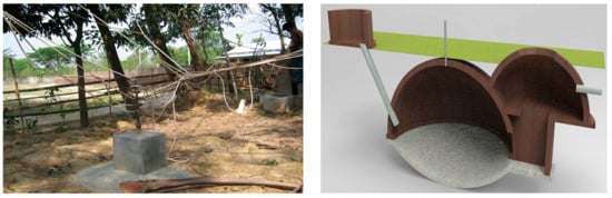 Van Ness et al., [14] proffer that a typical domestic biogas plant saves 2000 kg of wood fuel a year and that 1000 biogas plants can save the felling of 33.8 ha of forest each year—refer to Figure 2. for a typical example of a biogas plant [49]. Biogas can be used to replace kerosene for lighting and/or cooking [24], with a typical saving of about 32 L per year. This reduction in usage of flammable liquids has an incidental benefit of mitigating house fires that occur when lamps are inadvertently knocked over.