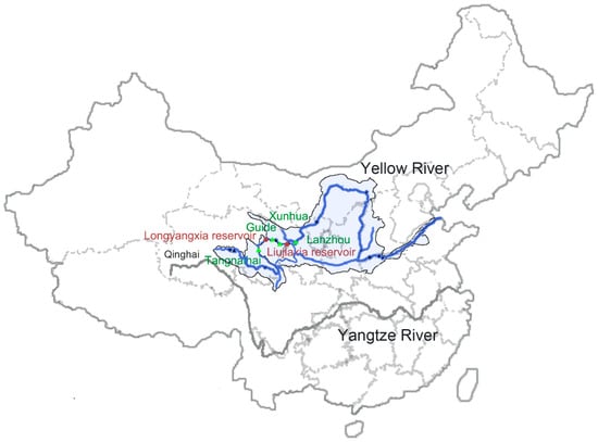 Yellow River basin and the location of the Longyangxia and Liujiaxia reservoirs.