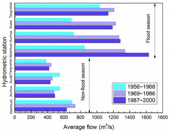 The statistics of flow in the flood season (from June to September) and the nonflood season (from October to the May next year) are shown in Figure 3.