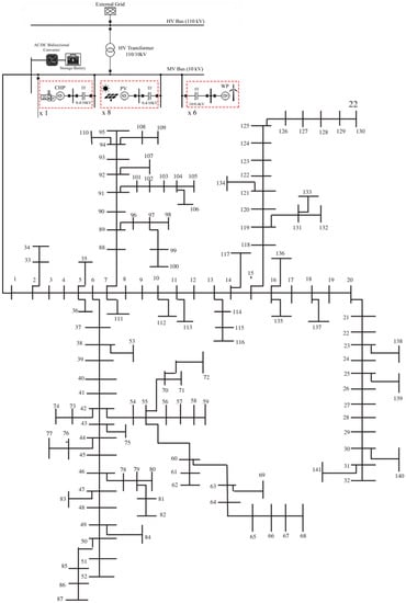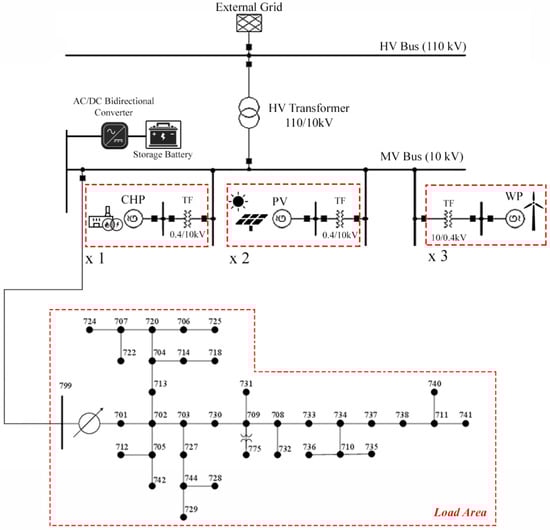 The first microgrid investigated in this paper is shown in Figure 4. This microgrid consists of a load area represented by the IEEE 37-bus test system, five DGs, a CHP, and a storage battery source.
