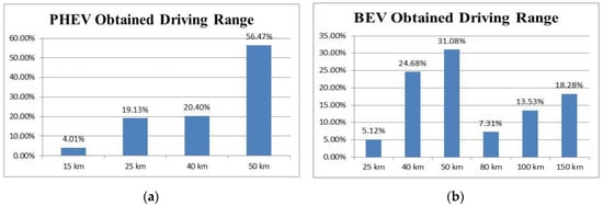 Distribution of obtained electric driving ranges (a) PHEV; (b) BEV.