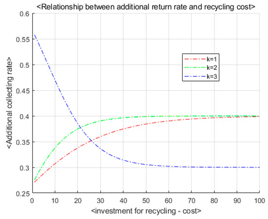 Figure 3 shows an example of a nonlinear function explaining the relationship between and . As shown in Figure 3, each means an index that represents each investment (1: advertisement, 2: additional installment of collecting facilities, and 3: incentive policy).