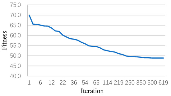 The genetic algorithm (GA) is used to solve multi-objective resource allocation problems (RAPs) [26]. We chose the GA as one baseline to run a selection simulation for one EV, for which the crossover rate was 0.85, the mutation rate was 0.01, population size was 3, and we obtained the convergence performance shown in Figure 4. The curve in Figure 3 is steeper with a clear convergence trend compared to the one in Figure 4.