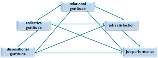 In order to test the simultaneous effects of the different kinds of gratitude on both job satisfaction and job performance, we have hypothesized a serial mediation model (Figure 1). In the figure, all of the possible relations are graphically represented.